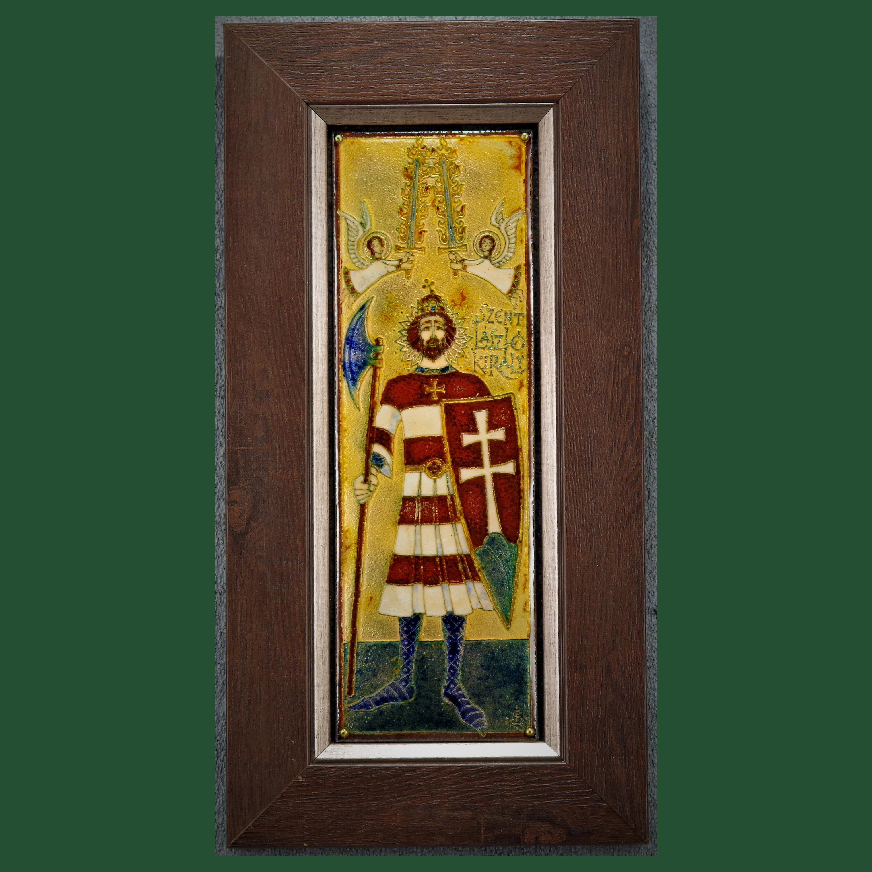Tűzzománckép vörösrézen, fakeretben